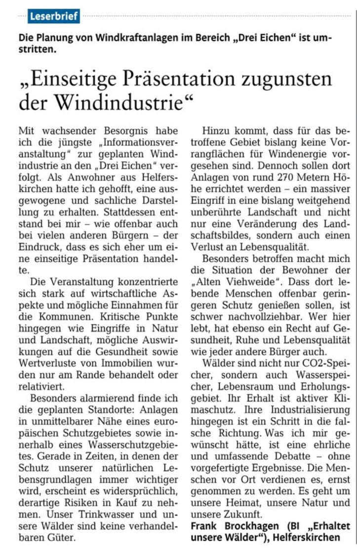 Leserbrief von Herrn Frank Brockhagen, Helferskirchen
